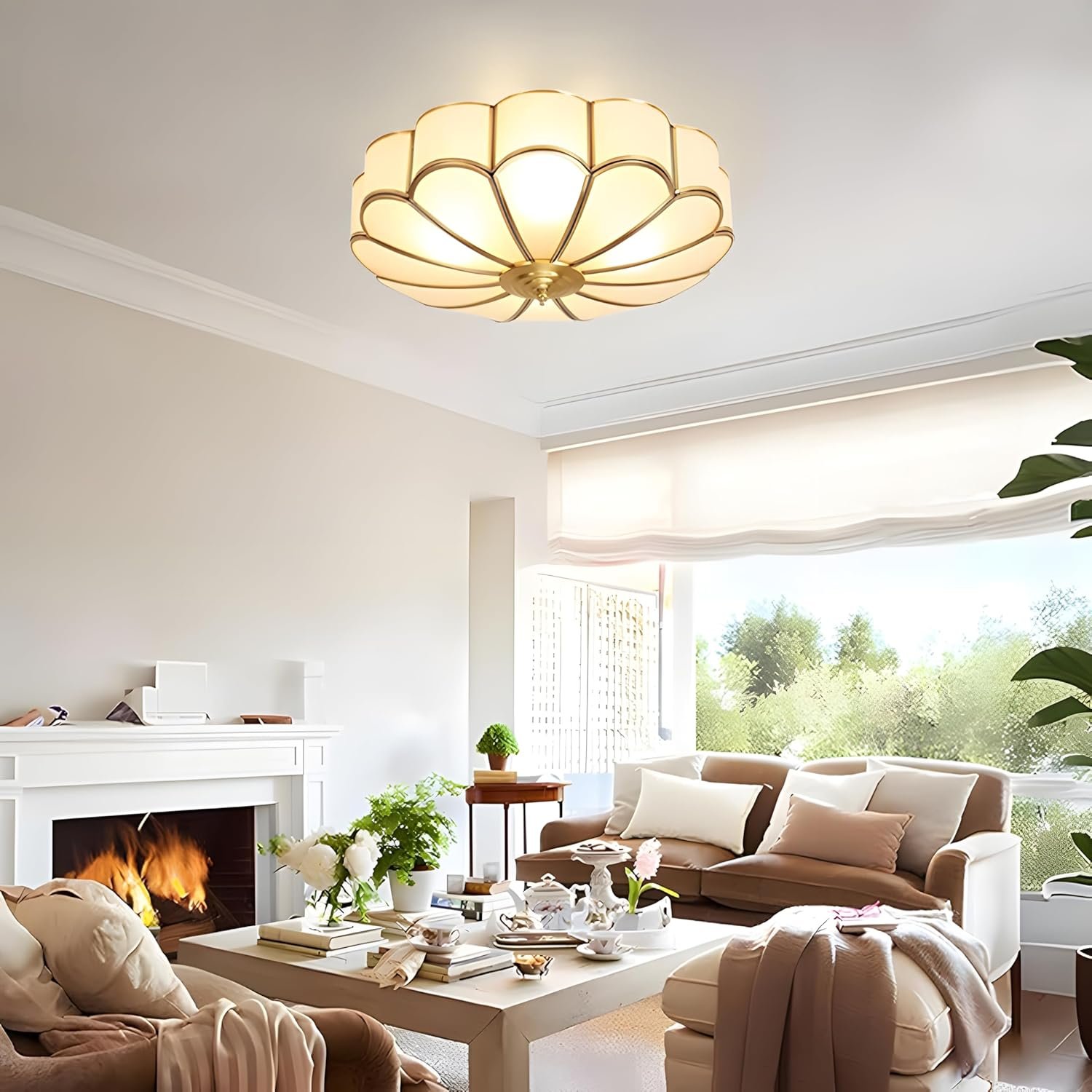 - Bedroom Lights for Ceiling:This modern glass light is made of high-quality glass, with unique frosted shade design, providing a sleek design. The glass lampshade combines the classic with the trendy, creating an elegant and beautiful look, providing a romantic lighting effect, adding beautiful decoration to your home. The retro brass flower semi flush mount ceiling light fixture not only gives you ample lighting, but also create a warm atmosphere